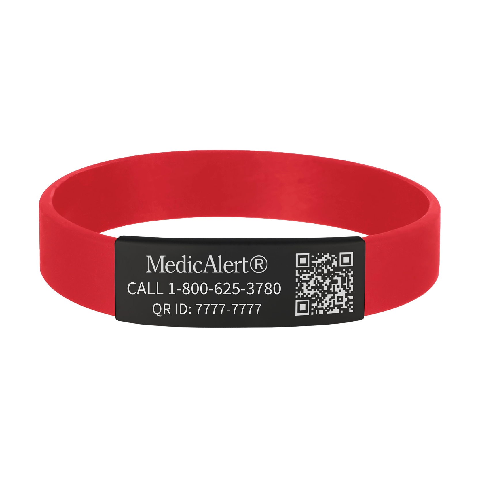 Adventure-ready, tech-savvy protection in a colorful package. The stainless steel QR Code ID emblem keeps your important medical info close at hand. Sturdy but flexible, the latex-free silicone band stretches comfortably over your wrist. Pick a color and enjoy worry-free protection.